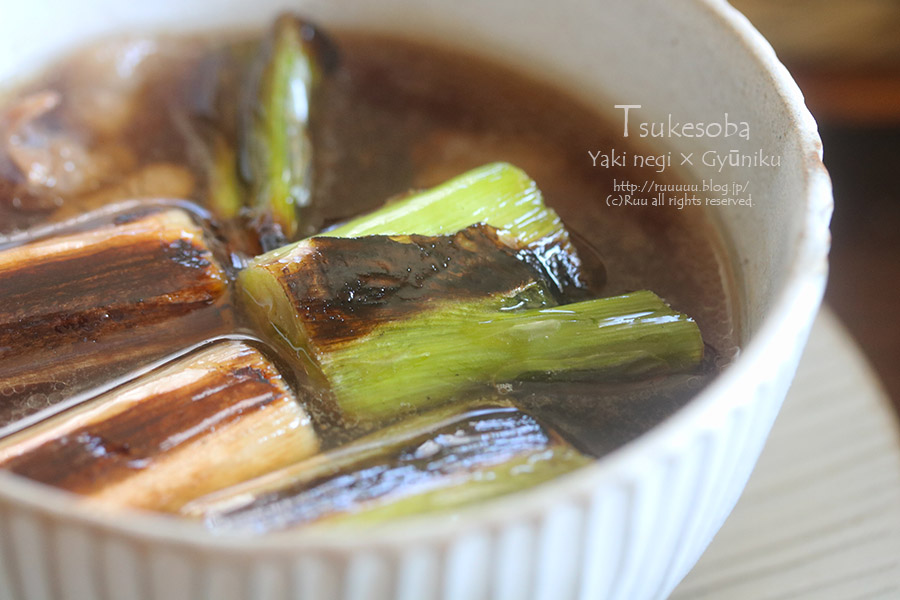 少し甘めのつけ汁に、焼いた長ネギをがっつり入れたつけそば。