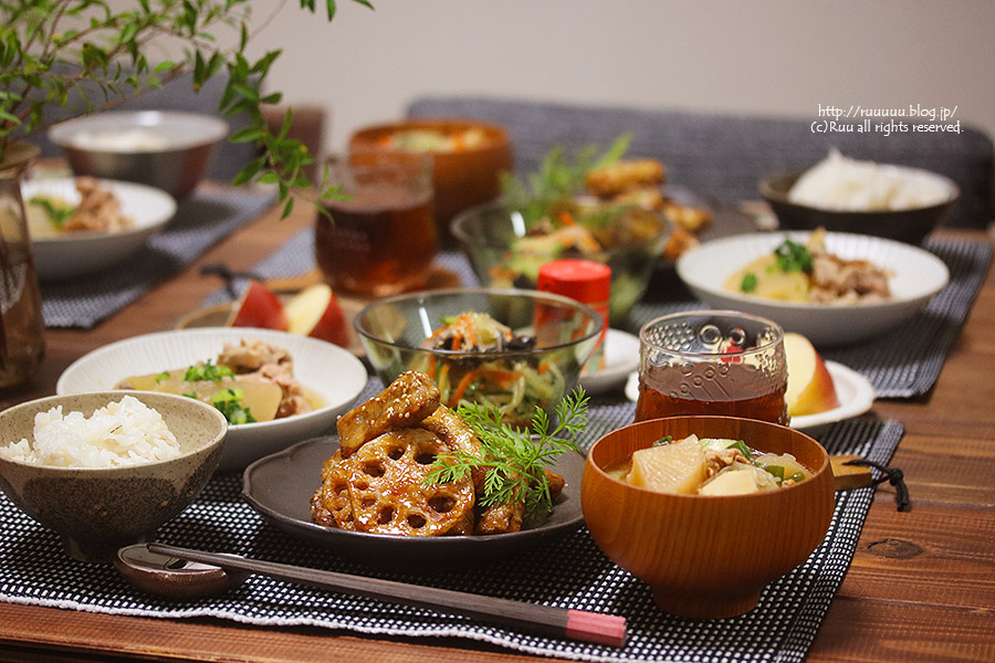 昨日の晩ご飯は、れんこんとごぼうの甘辛酢胡麻がらめ。