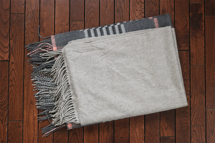 (上が3年愛用してるカシミヤストール/下がCashmeeさんのカシミヤストール)