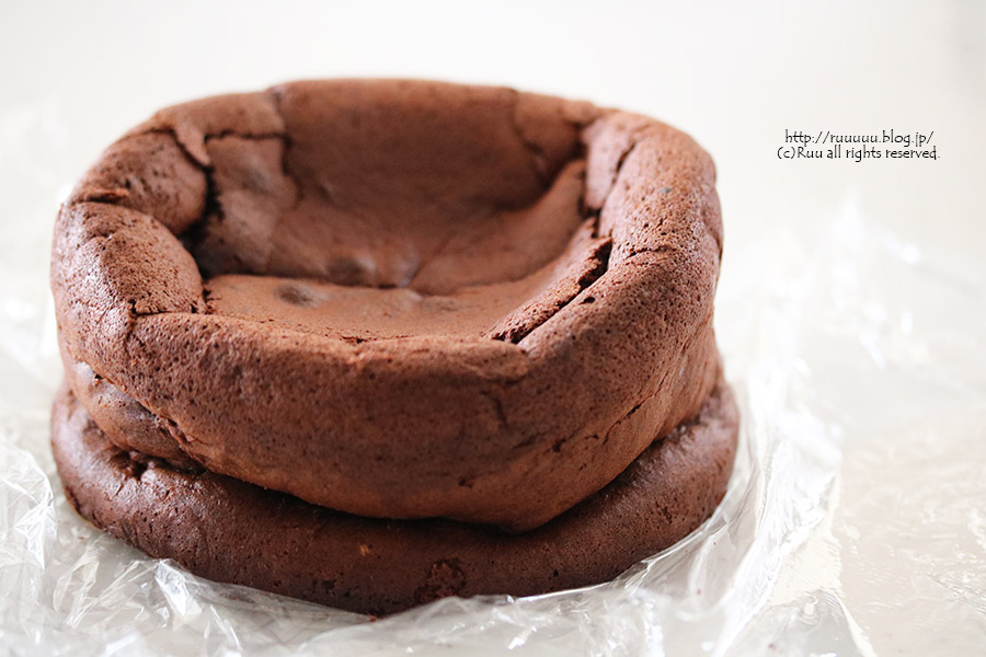 ガトーショコラには結構な量のチョコレートが練りこまれているので(←冷蔵庫に入れると生地がしまってかたくなっちゃう)、