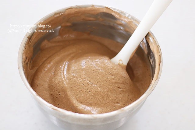 生地にツヤがあり、ゴムベラで持つと程よく流れるくらいの固さで。