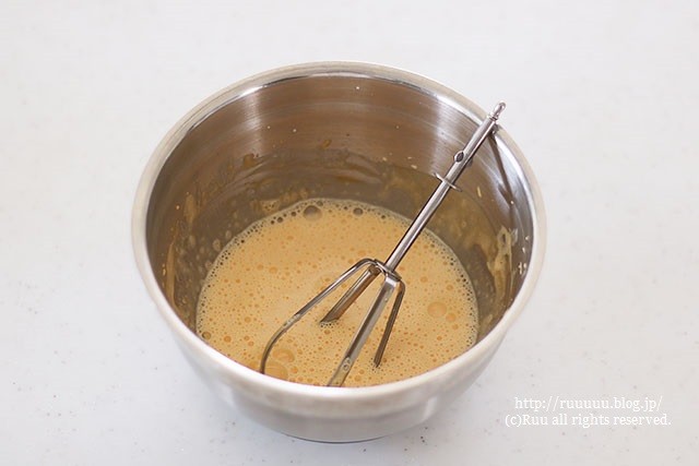 あたしはハンドミキサーのホイッパー部分を取って混ぜてます。←これでもOK。