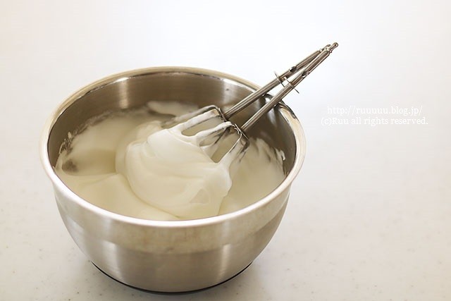 ボウルをひっくり返した時、メレンゲが落ちない程度の固さには立ててください。