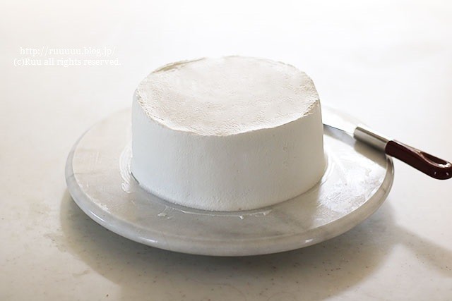 18:生クリームをシフォンケーキに塗る。