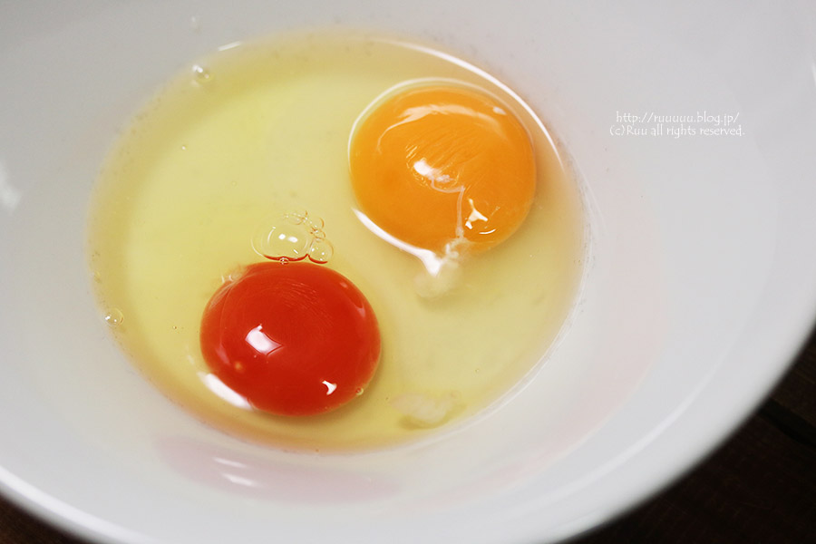 しかも、比較用に割ったたまごも、普通のたまごとは言え、実は産直で買った茶色の1パック200円くらいするちょっといいたまごで、