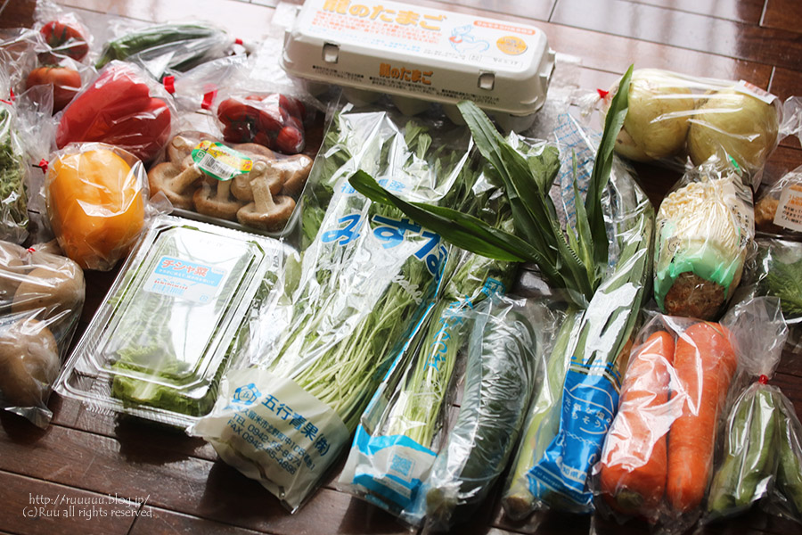 明日からはこのお野菜を使った晩ご飯です。お野菜は詰め合わせに入ってたもののみを使いますが、肉や魚などは普通に買ったものを使います。あと、米とか豆腐とかも。