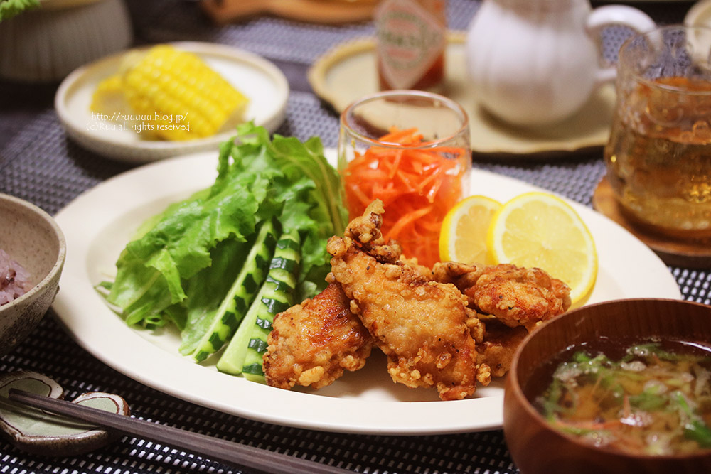 まずは、先週くらいの晩ご飯で、大人のから揚げプレート。