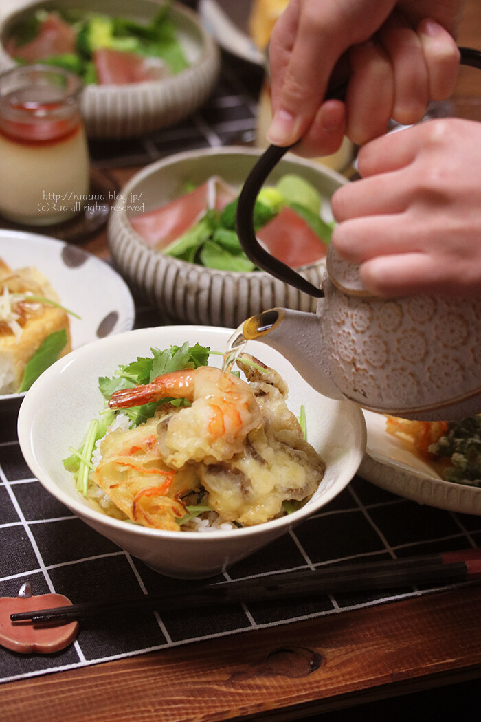 私「とりあえず、好きなだけ天ぷらをのせて食べてみて。残りの天ぷらは食べながらのせていって。」