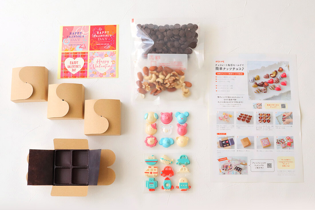 いずれもチョコレートの材料はもちろんのこと、ラッピング材までセットされ、