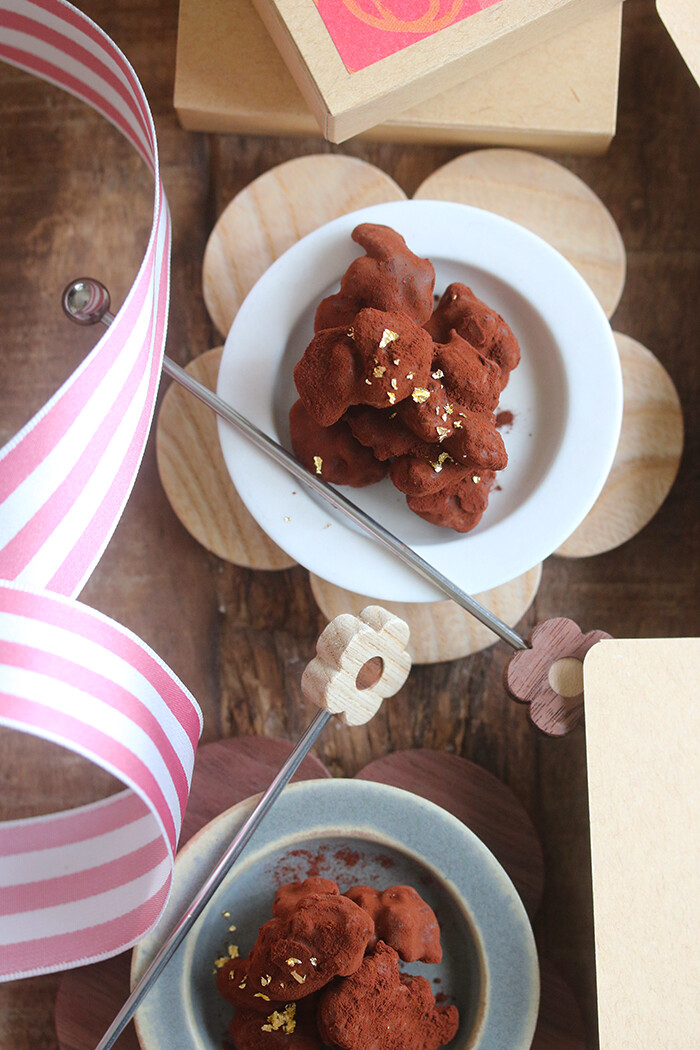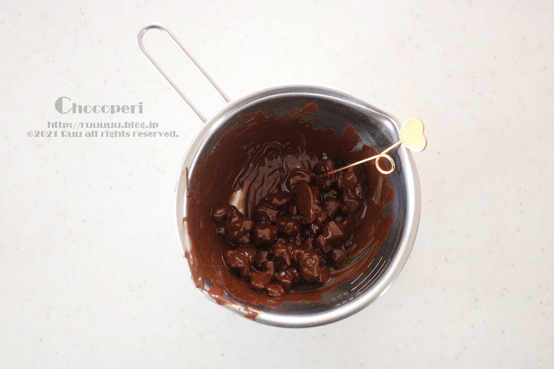 この時、チョコレートが熱々&サラサラだとからみにくいので、少し冷やしてもってりさせたものがおすすめ。