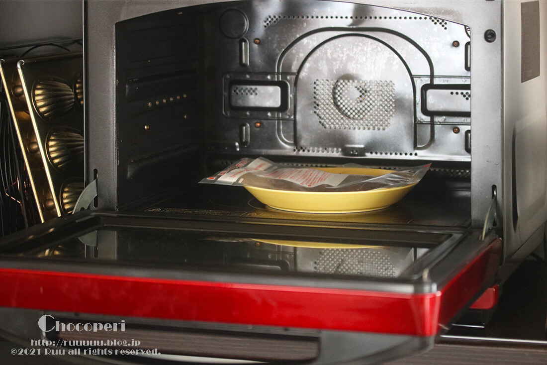 6:皿の上にチョコレートをのせ、600wのレンジで1分加熱する。一度取り出してもみ、様子を見ながら再度600wで40~60秒ほど加熱する。