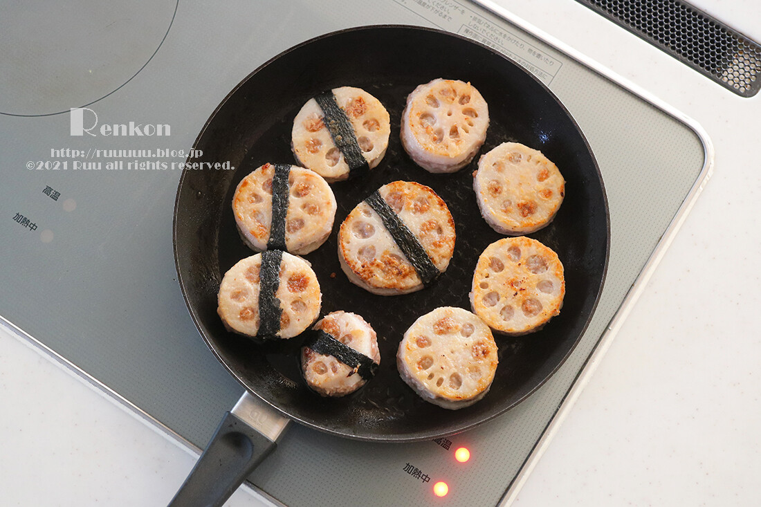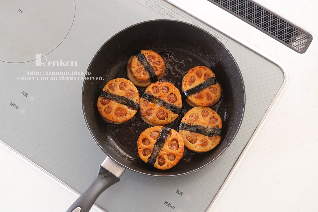 はがれない!れんこんのはさみ焼きできあがり。