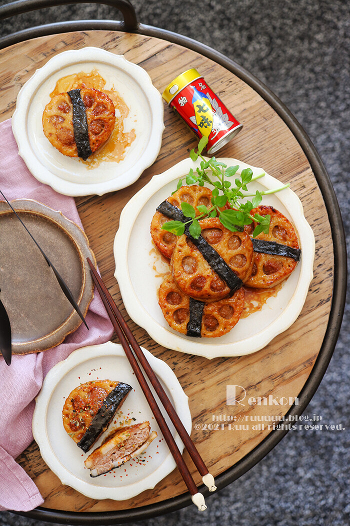 はがれやすいはさみ焼きを海苔の力でがっちりホールドした「はがれない!れんこんのはさみ焼き」のレシピです。