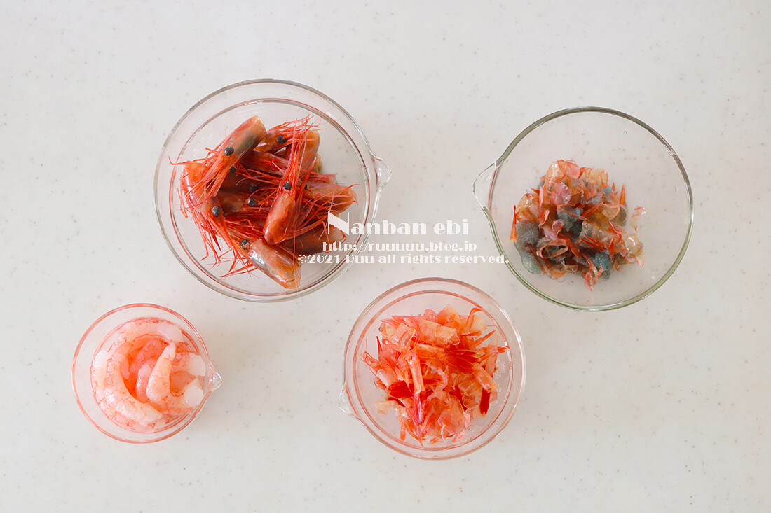 こちらは一般的に甘海老と呼ばれるものなので、普通の甘海老(お刺身用のもの)で大丈夫です)