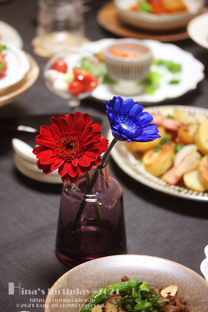 テーブルフラワーは、一番娘の彼氏からの贈り物。