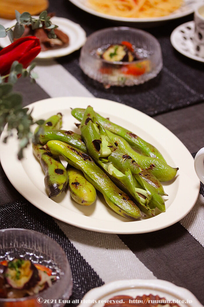 パスタの他には、焼きそら豆。