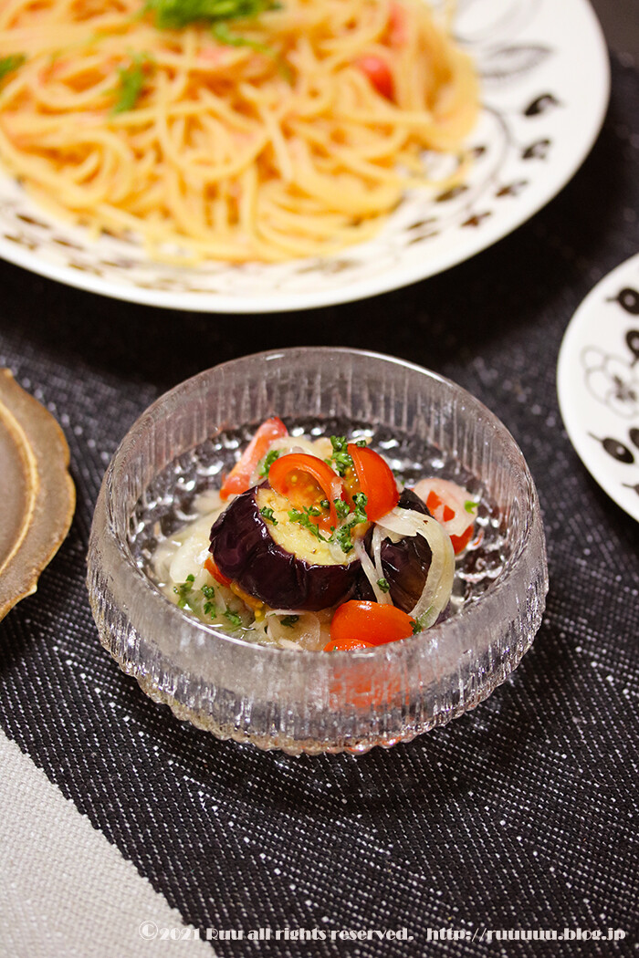 で、話を戻して、茄子のマリネ。