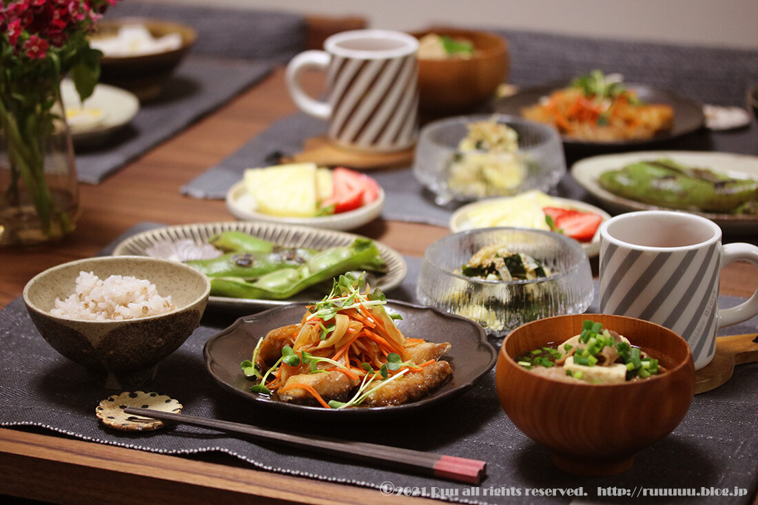 ではでは、ちょっと前の晩ご飯より、鯵の南蛮漬け。