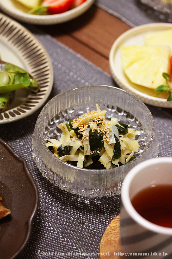 ほんで、箸休めに姫皮とわかめでナムル。