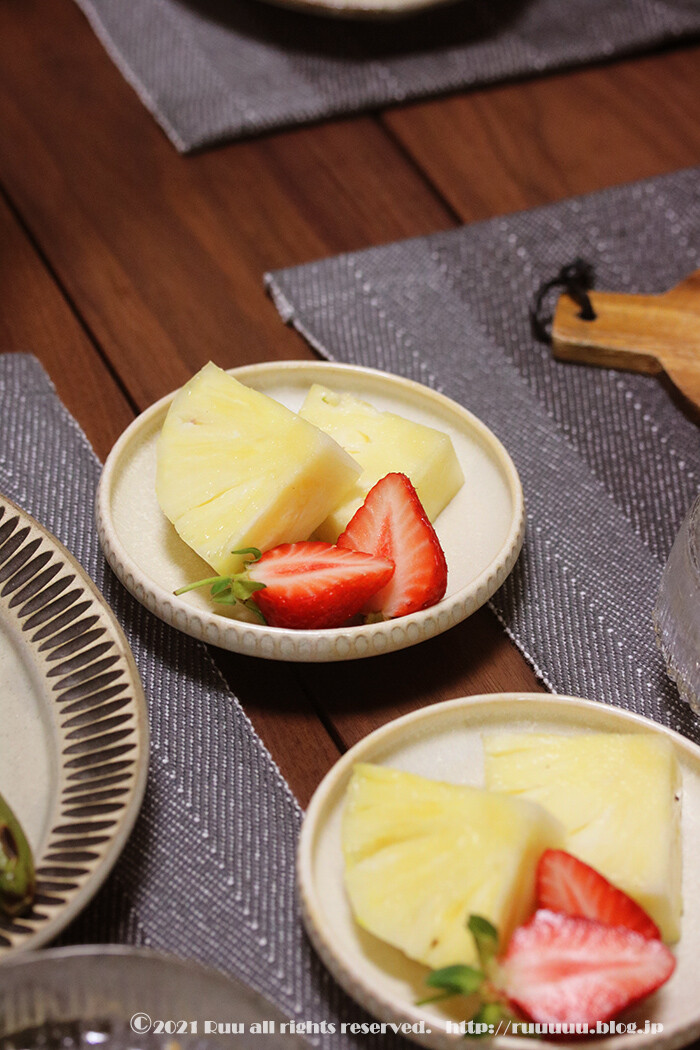 で、〆のデザートは一番娘がどハマリ中の台湾パイナップルと越後姫。