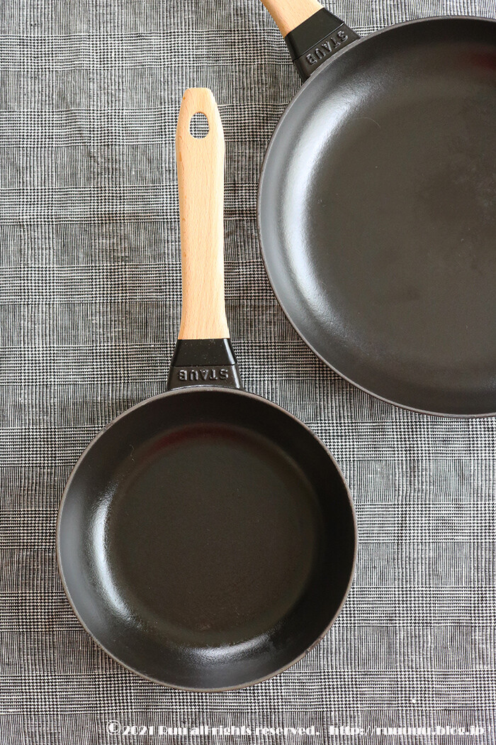 那須のアウトレットで買った20cmと28cmのストウブフライパン(確か2つで20,000円いかなかったような記憶が)。