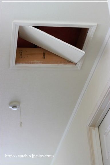 案の定、ものすごい強風が吹き荒れ、我が家を駆け巡り、うちの天井を破壊した模様)