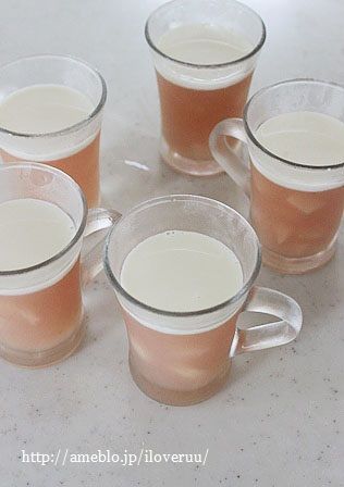 (ミルクゼリーは、桃の飾りをのせるのに(ジュレが柔らかすぎて飾りをのせれないタメ)作っただけのものなので、