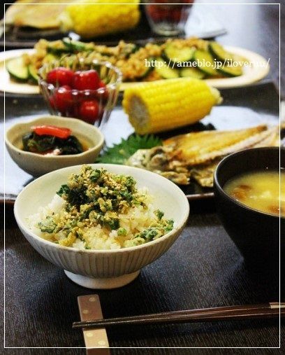 そしてご飯は、かぶの葉と卵のふりかけご飯。