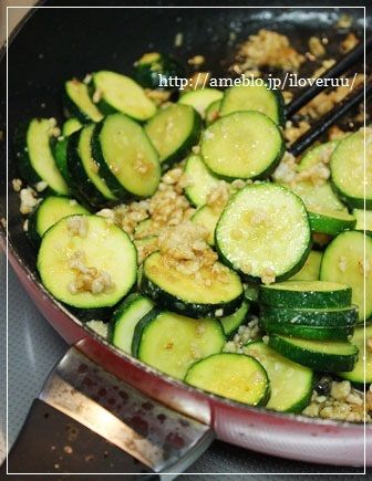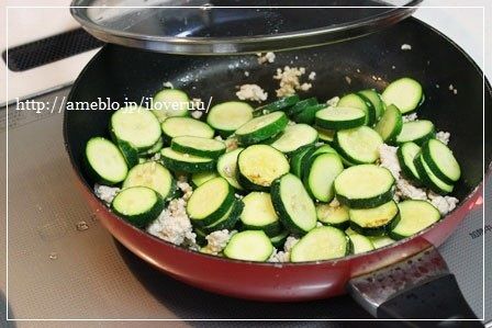 ズッキーニを入れ、蓋をして蒸し炒めにする。