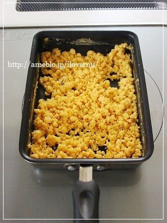 炒り具合はお好みでいいんですが、あたしは日持ちさせたいので、ポロポロになるまで炒ります。