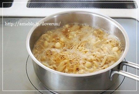3:1のえのきだけを入れ、弱めの中火で2~3分煮る。