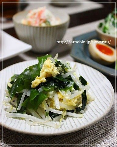 炒め物は三陸わかめだし。