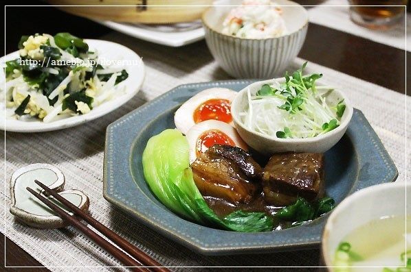 初日は大根と卵を添えて、こんなスタイルで食べた豚の角煮。
