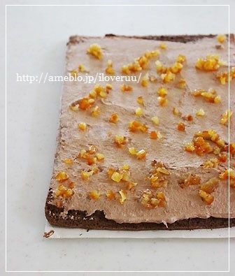 濃厚なチョコレートクリームにオレンジピールを散らして、