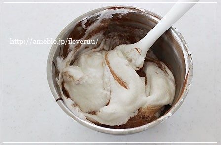 そうしないとココアがダマダマの生地が焼きあがるよ。