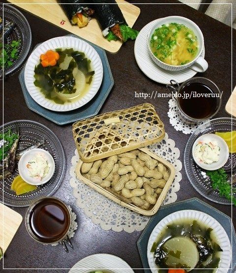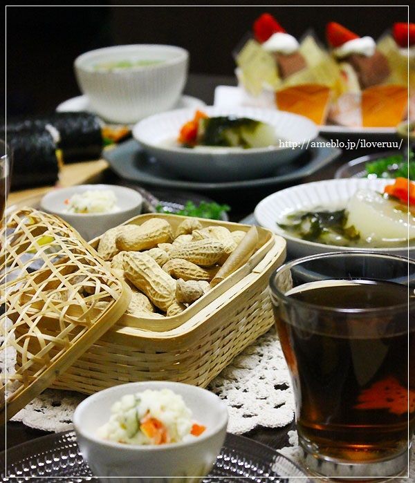 恵方巻き食べて、落花生食べて、恵方ロール食べて。