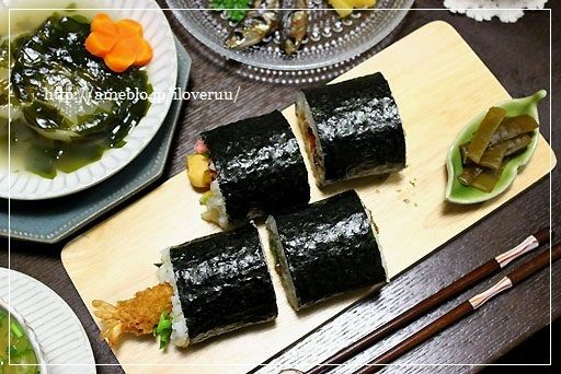 太巻きに海老フライ巻きに恵方ロール。