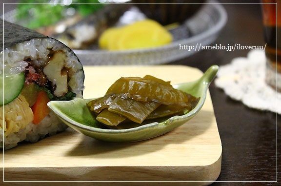 そんな太巻きには、ガリの代わりにわかめの茎を添えて♡