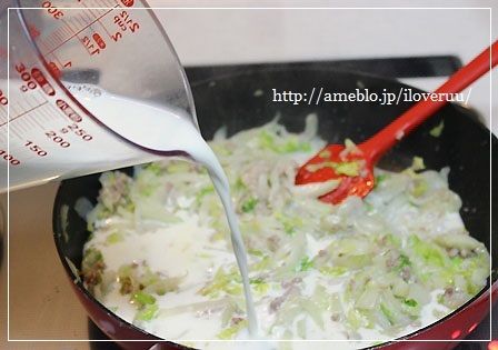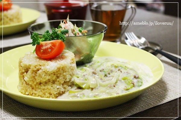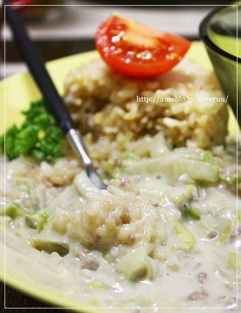 白菜と挽き肉のクリーム煮かけご飯