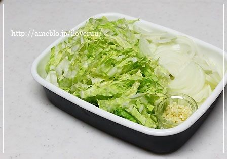 1:にんにくはみじん切りに、玉ねぎはスライス、白菜は縦半分に切り、細切りにする。
