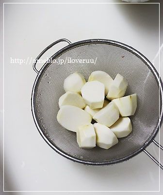 2:里芋が大きければ大き目の一口大くらいに切り、ザルに入れ、