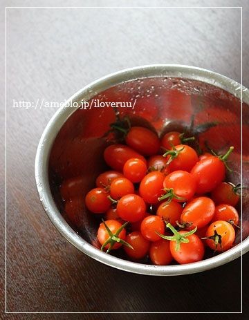 4:耐熱皿に3をのせ、周りにヘタを並べ、200度に余熱したオーブンで30分ほど焼く。