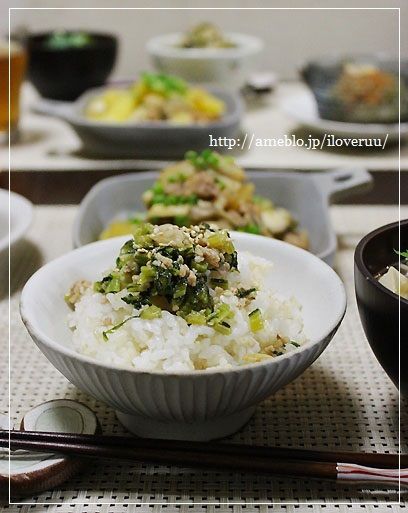そして、ご飯には、常備菜のかぶの葉ふりかけをのせて。