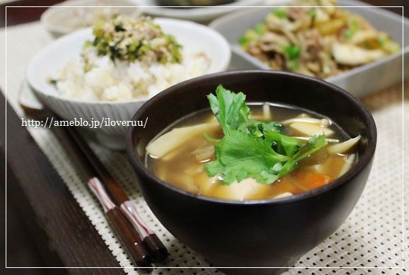 そぼろ炒めに使っても、さらに残ったきのこは、けんちん汁に。