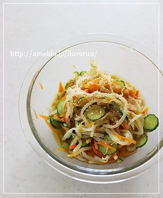 わかめやささみ、ちくわなんかを足してかさ増しすれば、4人分のサラダになりまっせー。