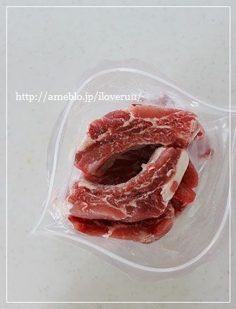 2:スペアリブをジッパー付ポリ袋に入れる。