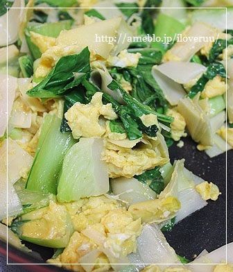 筍と青梗菜のふわふわ卵炒めできあがり~♡