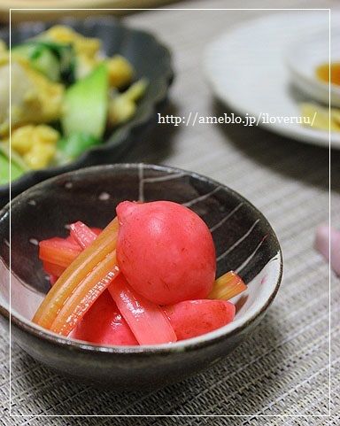 セロリとラディッシュの甘酢漬けきになるーーーー!!!色がきれーい!!