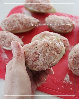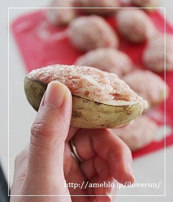 ここに肉ダネを詰めるんでね。小麦粉は接着剤代わりです。