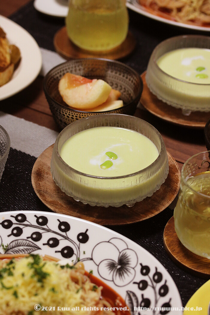 スープは薄皮むきに発狂しそうだった枝豆の冷製ポタージュ。